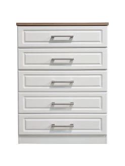 SWIFT Regent Ready Assembled Chest of 5 Drawers Chest in White Ash/Oak-Effect – Made in Britain – FSC® Certified