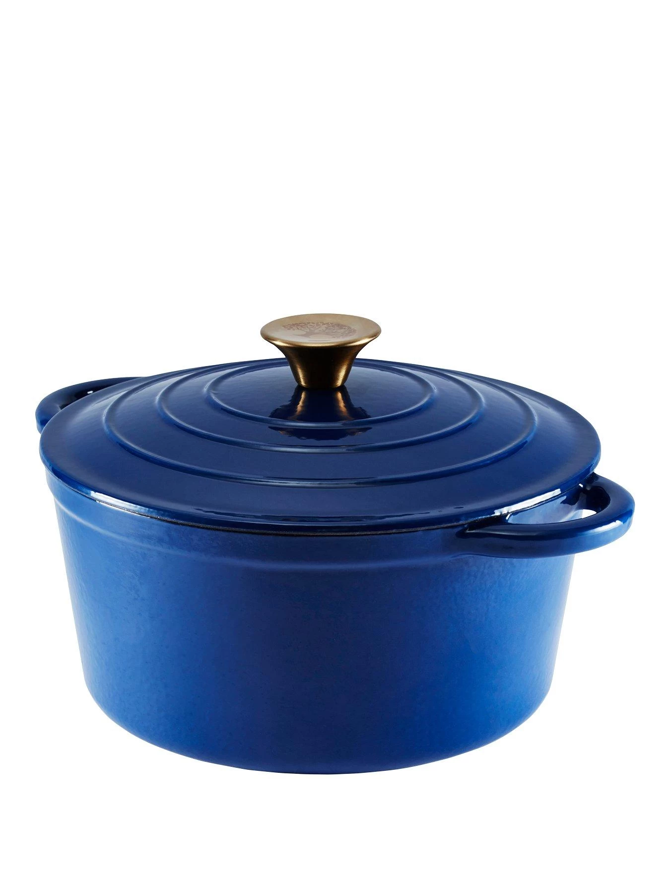Tower Barbary & Oak 24 cm Cast Iron Round Casserole – Blue