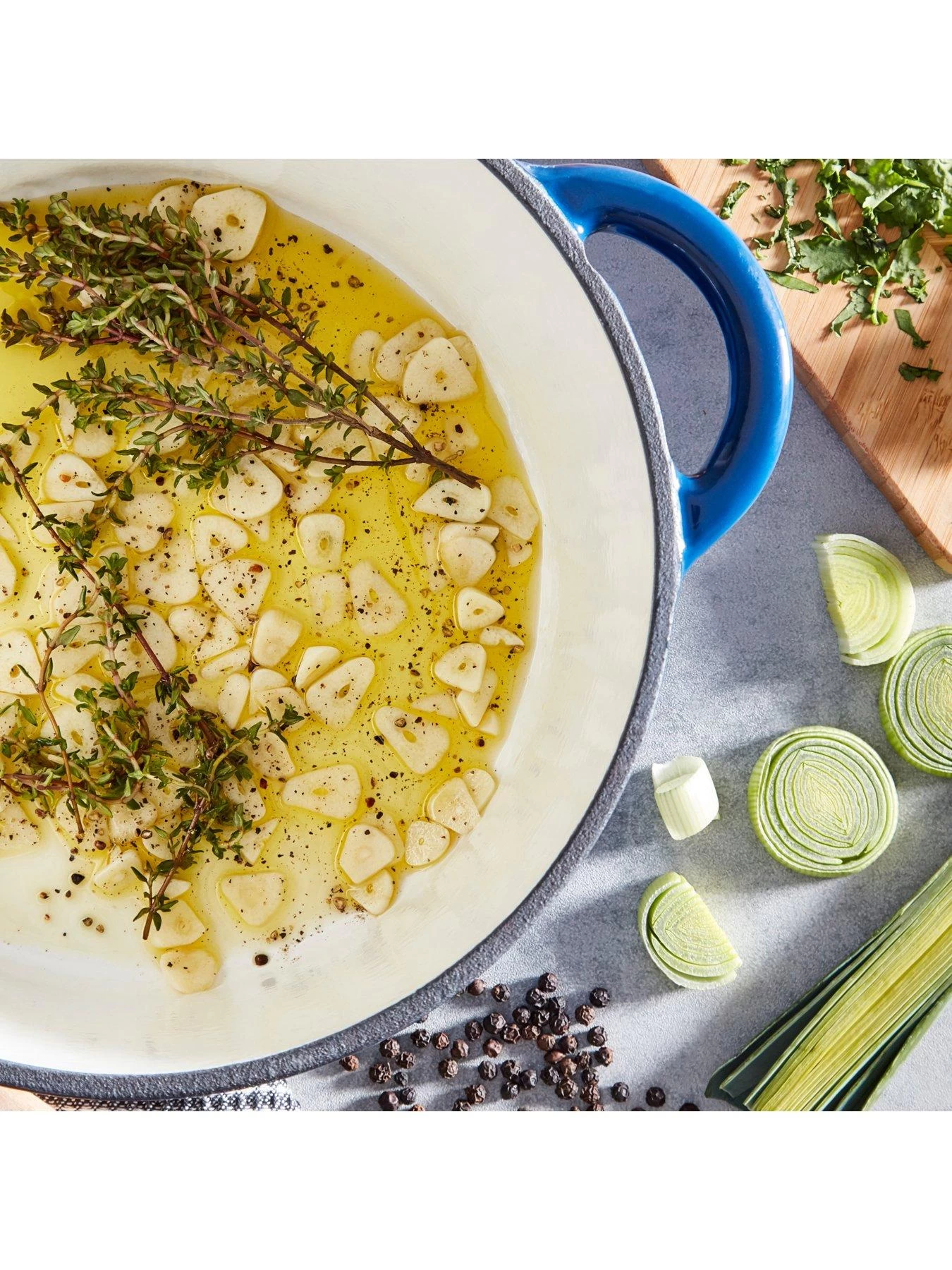 Made for more than just casseroles, the high sides and and 24 cm diameter means there’s plenty of room for everything from family-filling midweek curries or delicious joints of meat through to tasty fruit-filled crumbles. A cast iron construction ensures heat spreads consistently throughout the pan and is retained for much longer than aluminium or stainless steel pots and pans.