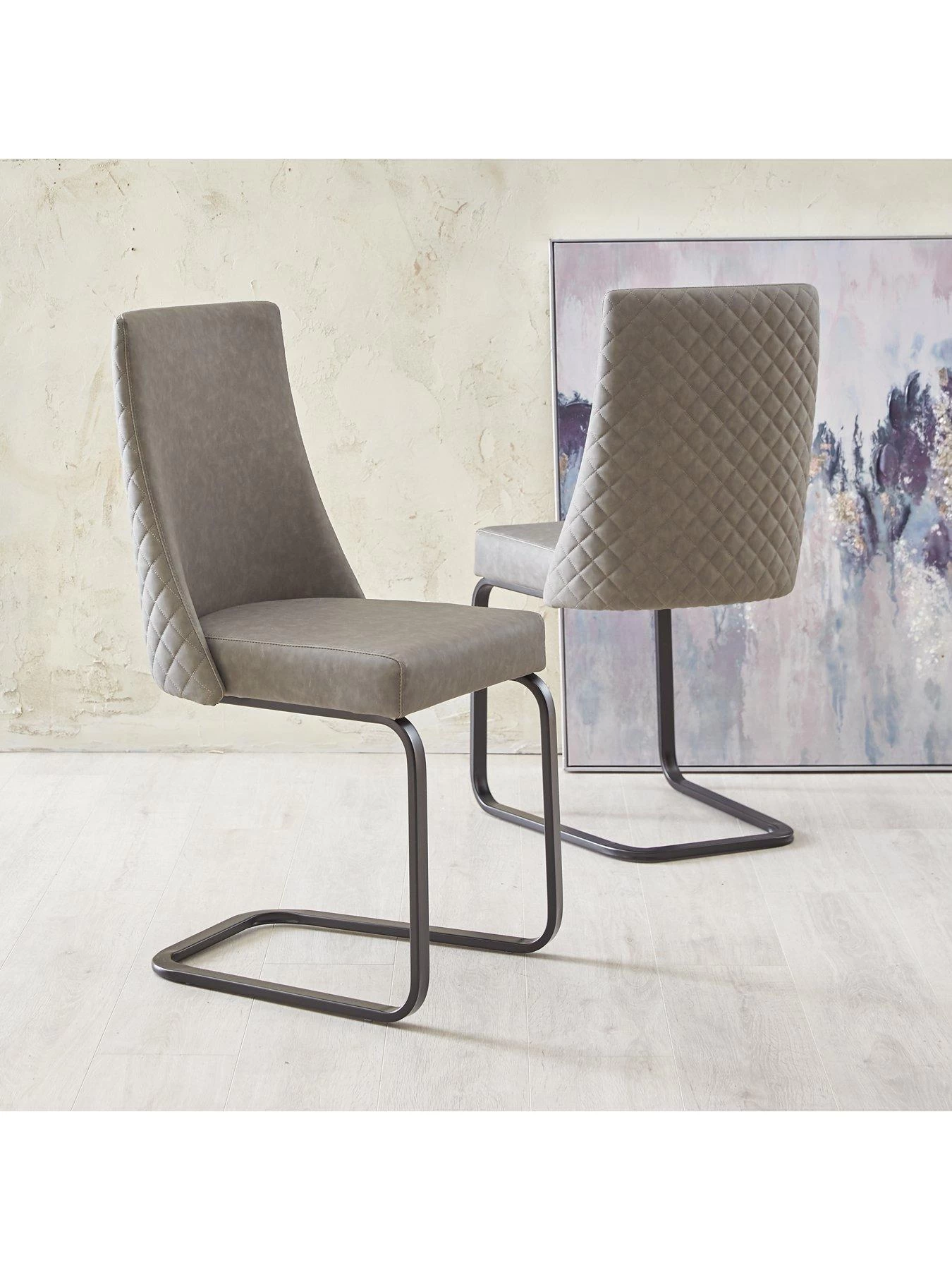 These contemporary cantilever chairs will update any dining table with a touch of modern style. Cushioned for softness for all three courses, they’re upholstered in a sumptuously soft charcoal coloured velvet fabric with a stunning diamond stitched pattern all over. The metal legs are madeĀ a smart black colour toĀ giveĀ the chairs a two tone finish.