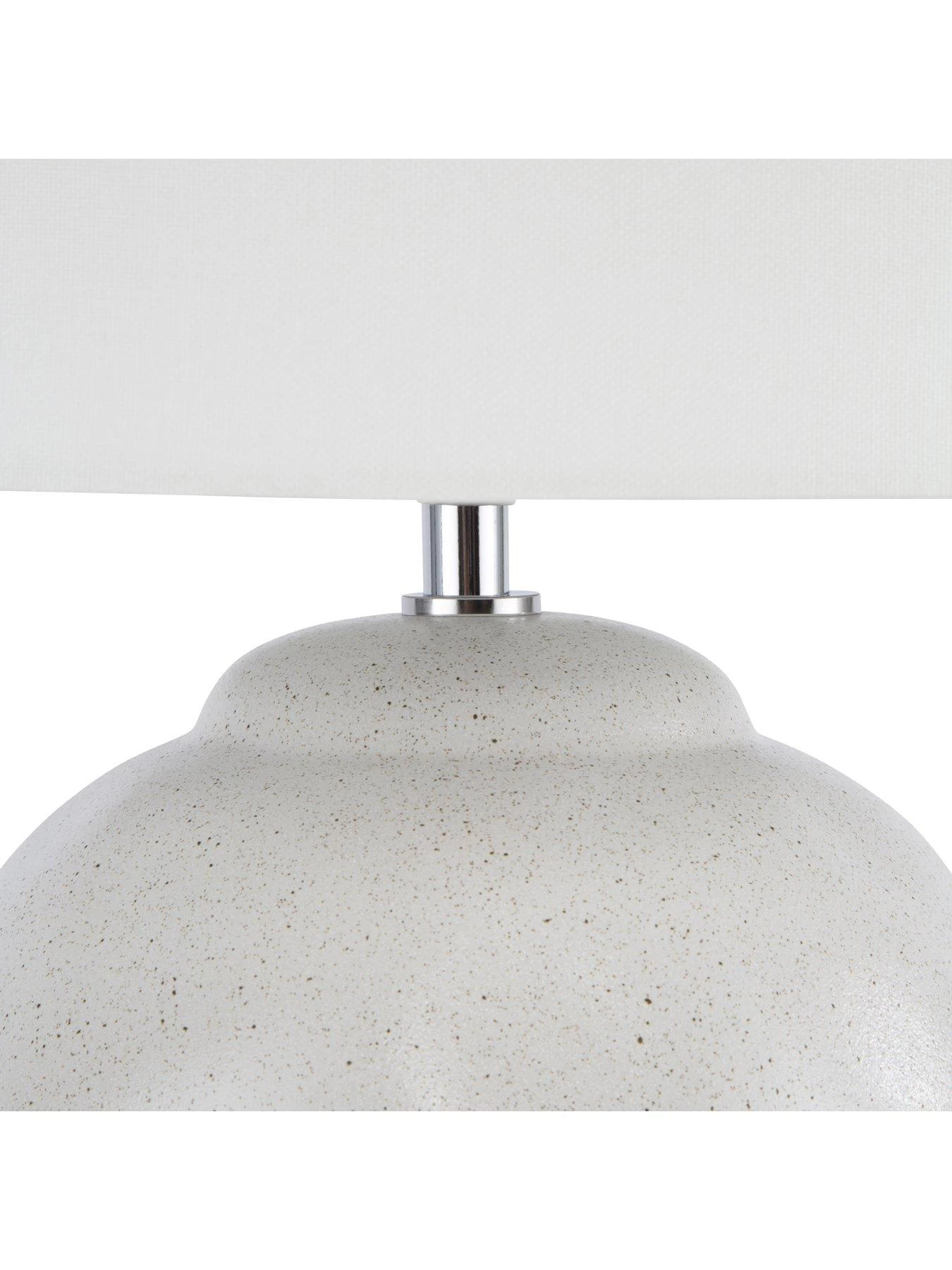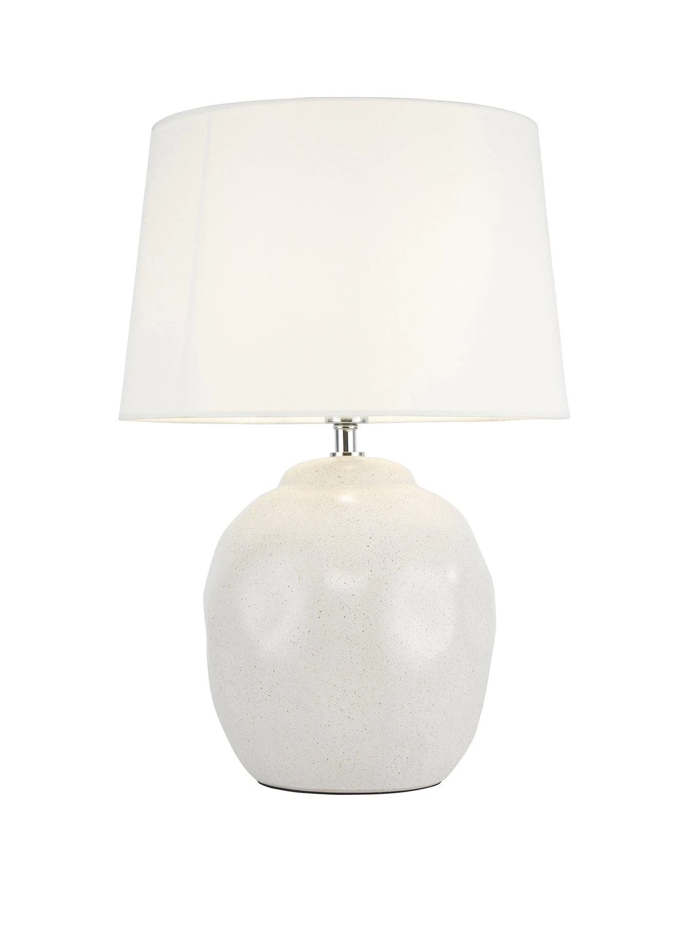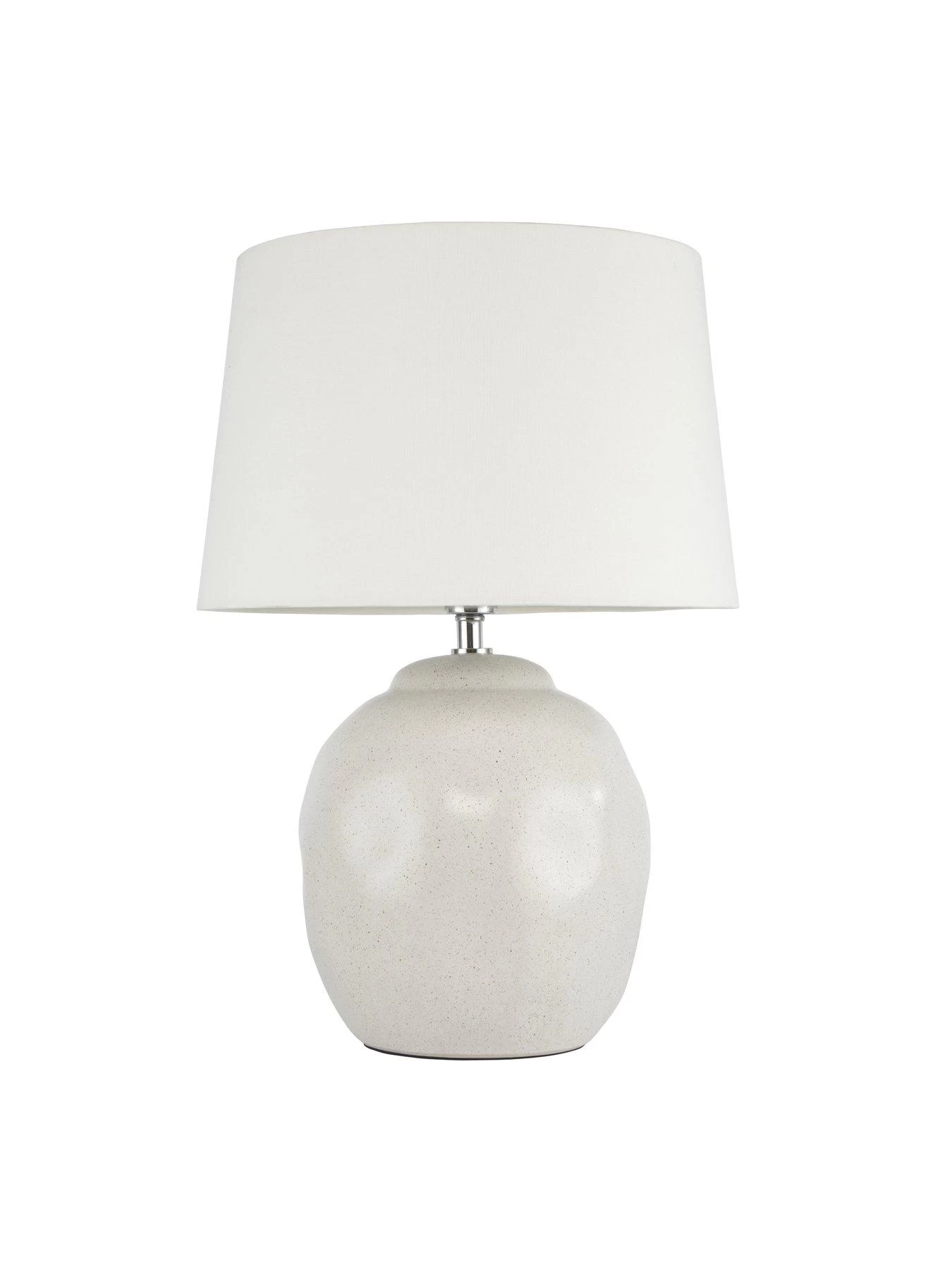 Perfect for sitting on a sideboard or bedside table, this Bryson lamp features a stunning white ceramic base with a mottled finish and an uneven surface that catches the light at different angles.