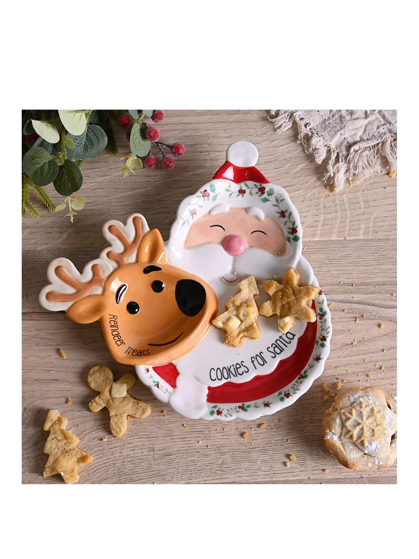 Very Home Ceramic Santa and Reindeer Christmas Eve Treat Plate