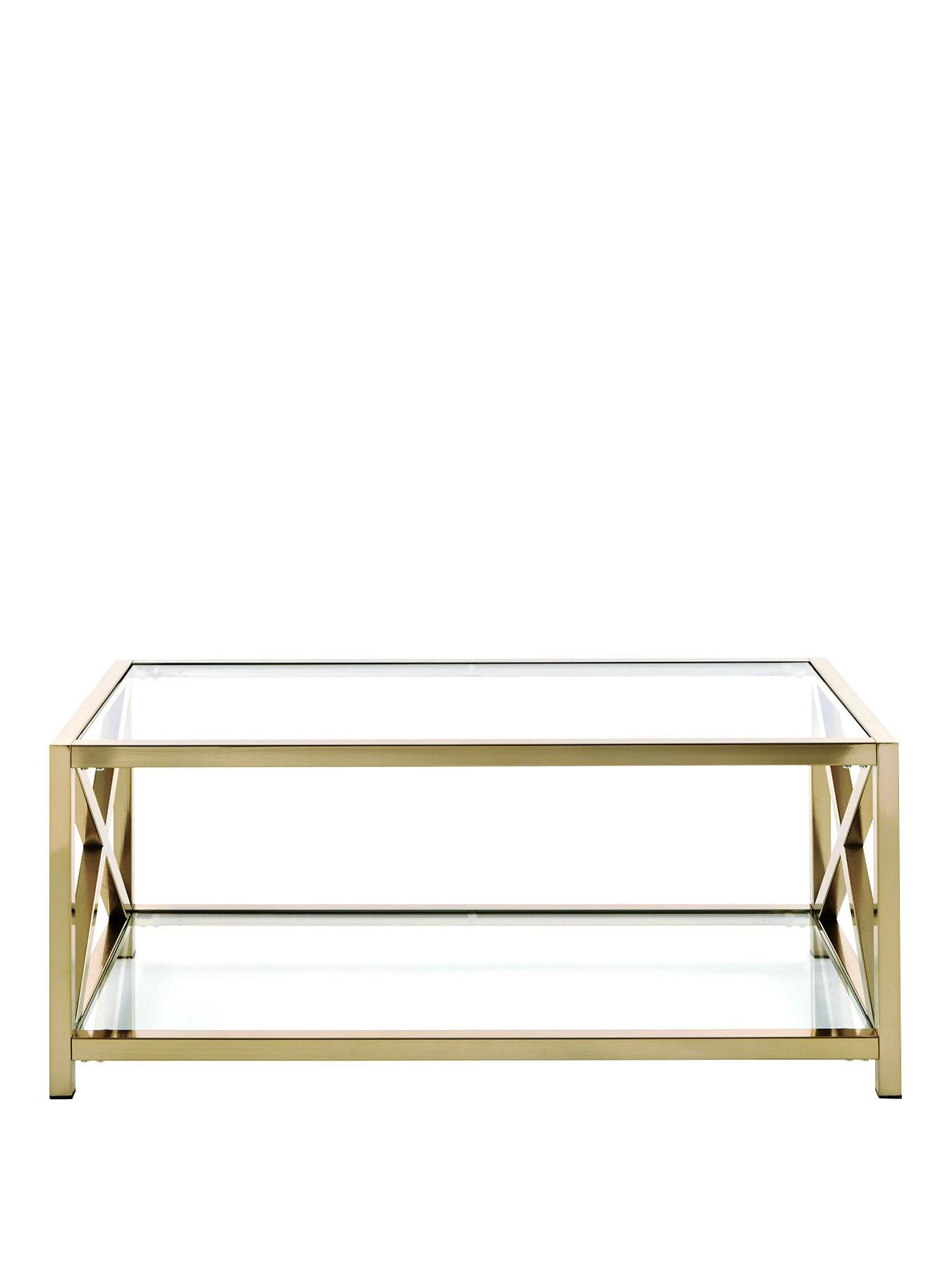 This stunning coffeeĀ table from the Christie collection will add some real glitz and glam to your living room. The metal frame is finished in a shiny brass colour that catches the lightĀ and features a jaw-dropping X to each end.