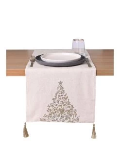 Very Home Christmas Table Runner with Embroidered Tree in Natural/Gold – 175 cm