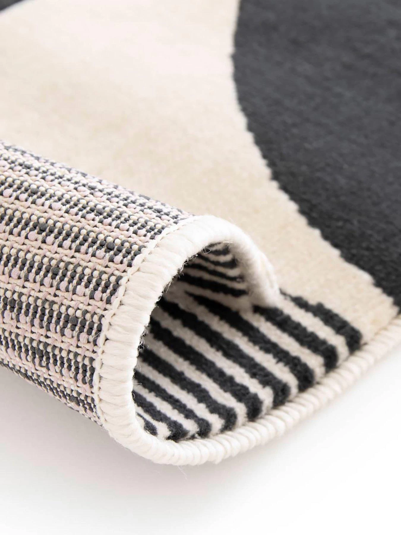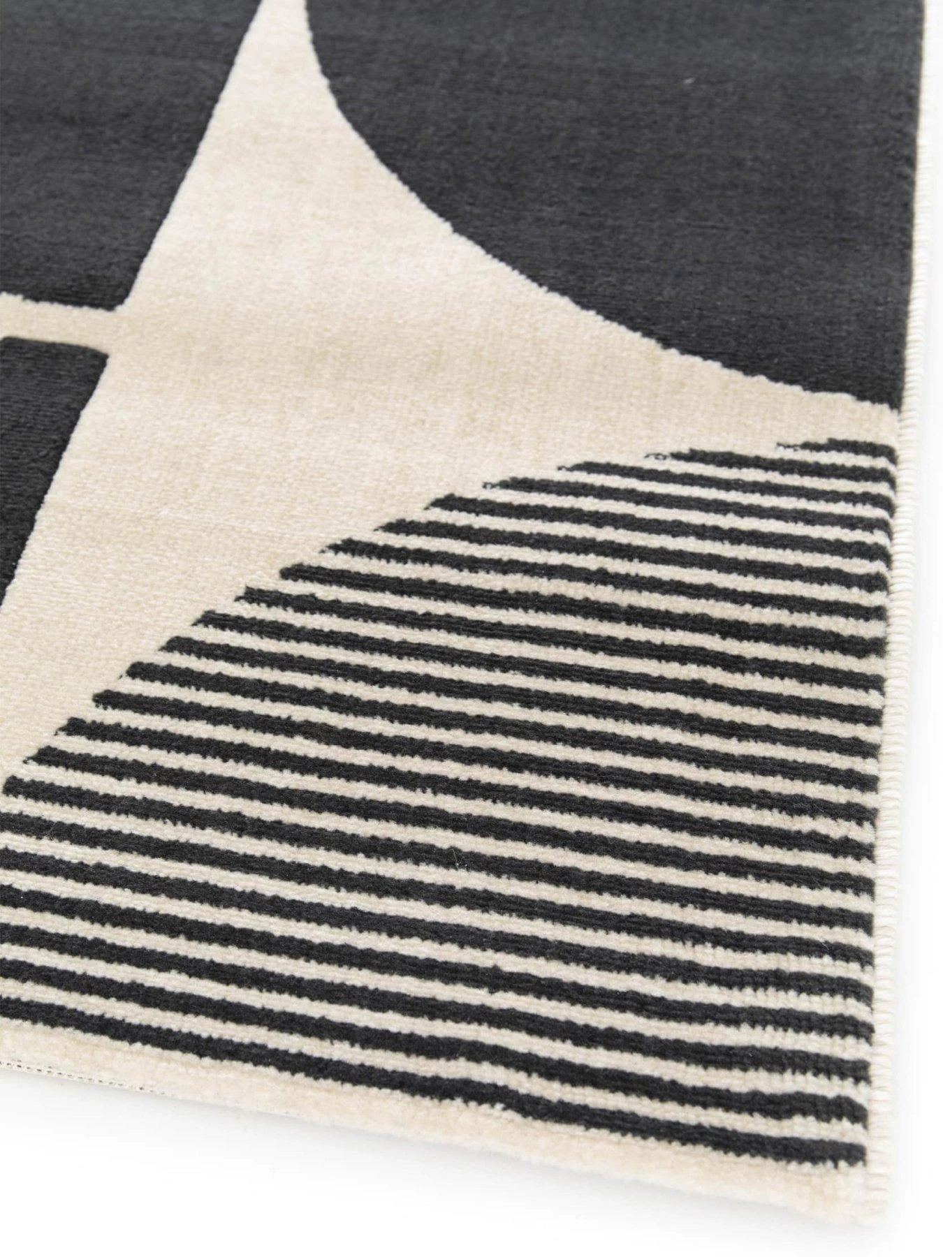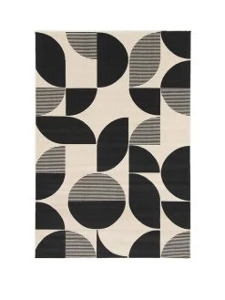 Sumptuous under foot, its dense 100% polypropylene pile is both soft, durable and inherently stain-resistant – perfect for busy homes. The drop stitch detailing creates a cool semi-carved look and the bold circle design features different shades of black on a light base.