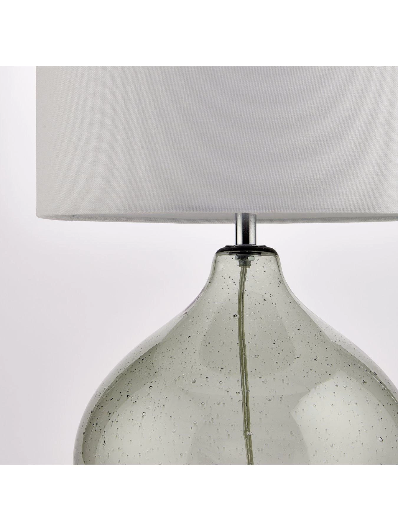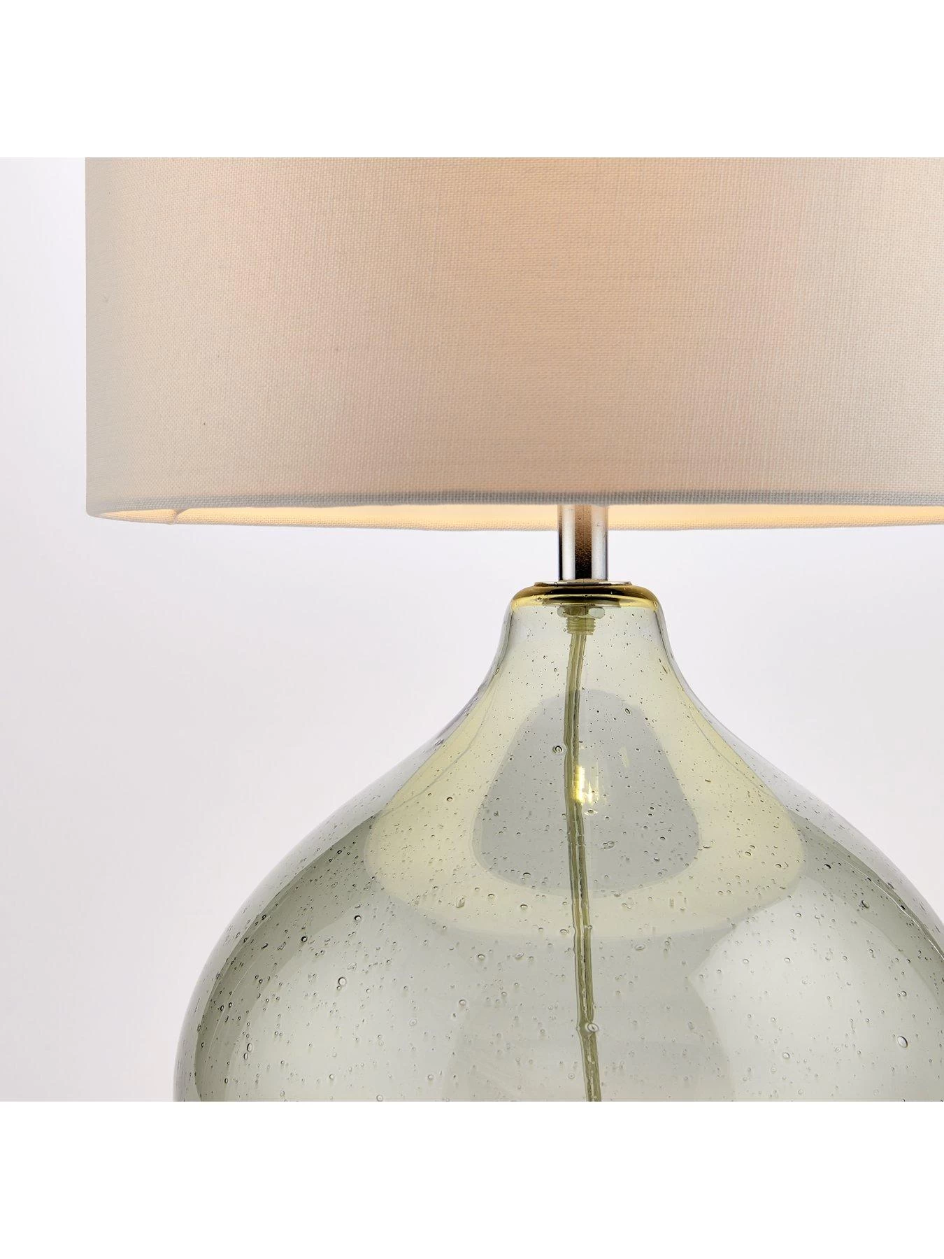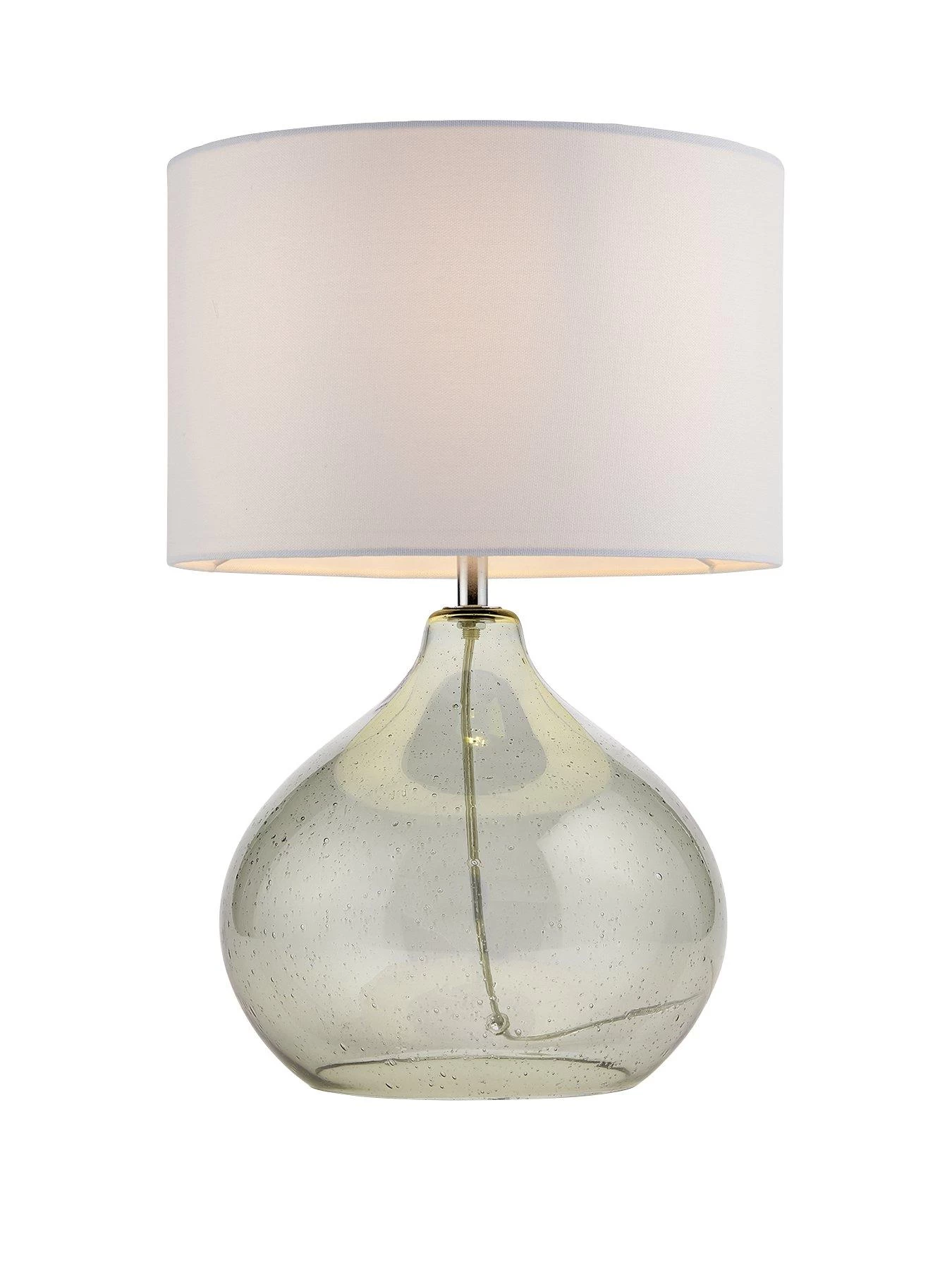 Part of the Dew collection of lighting, this table lamp catches the eye with a sage tinted glass pear-shaped base.