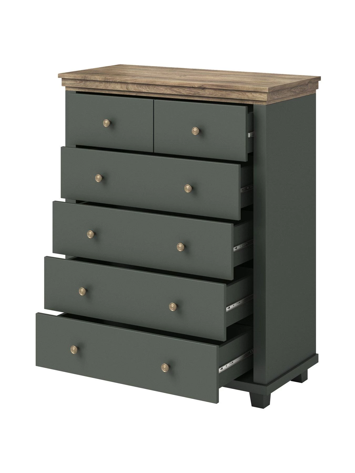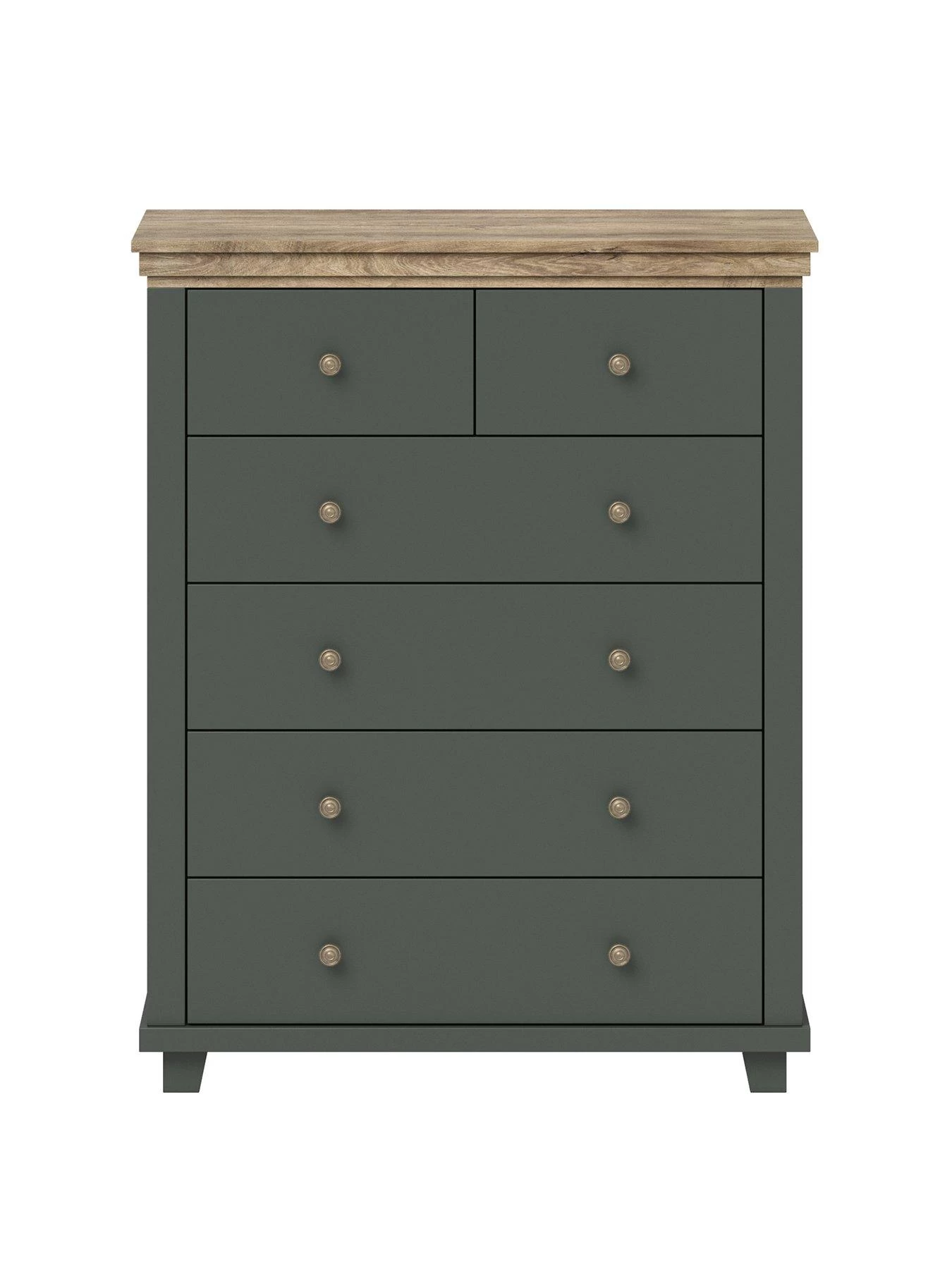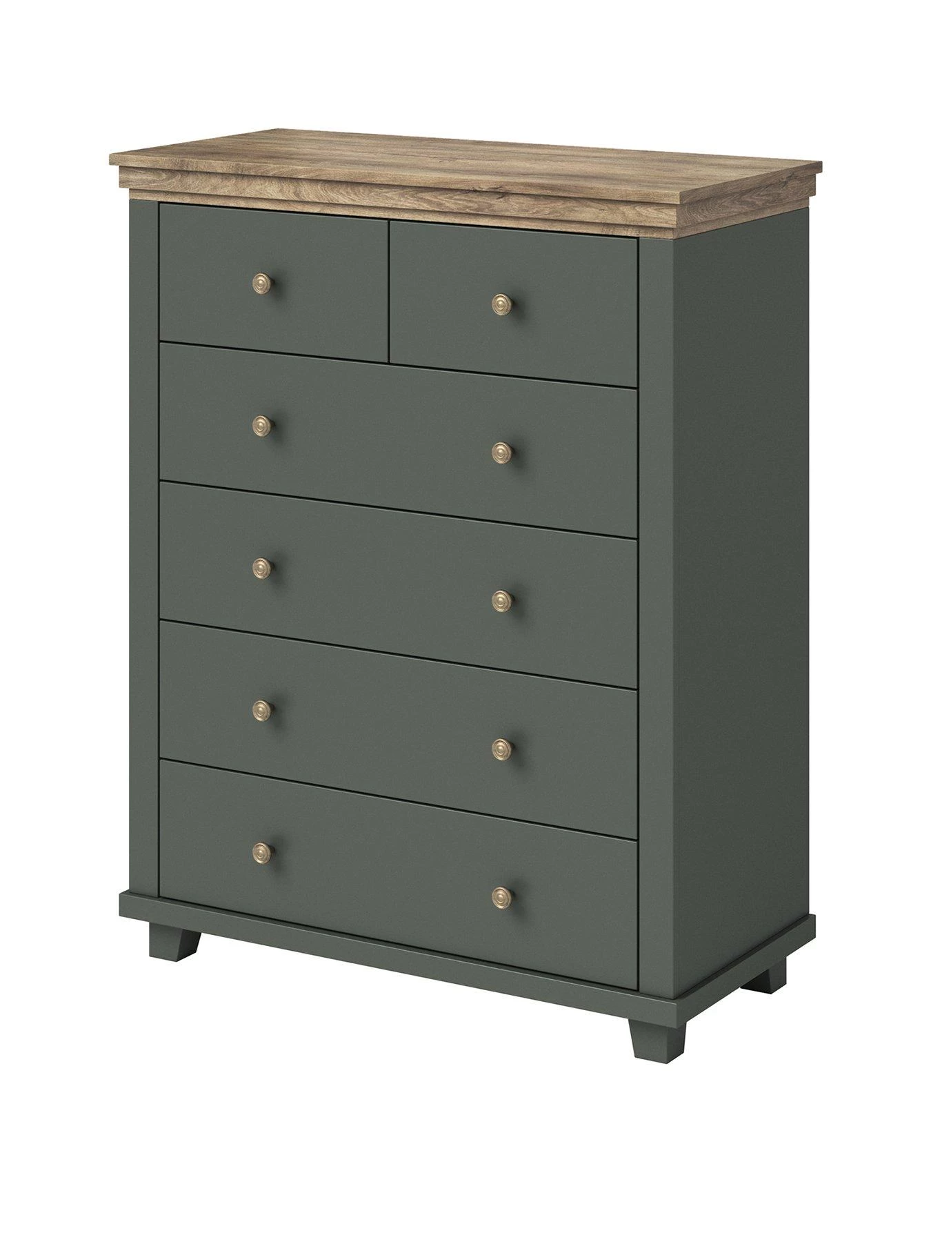 Evora 4 + 2 Chest of Drawers in White/Oak Effect or Green/Oak Effect