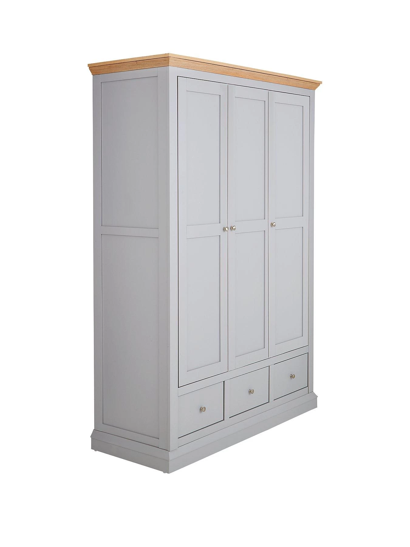 Hanna 3 Door, 3 Drawer Wardrobe in Grey/Oak Effect or Cream/Oak Effect