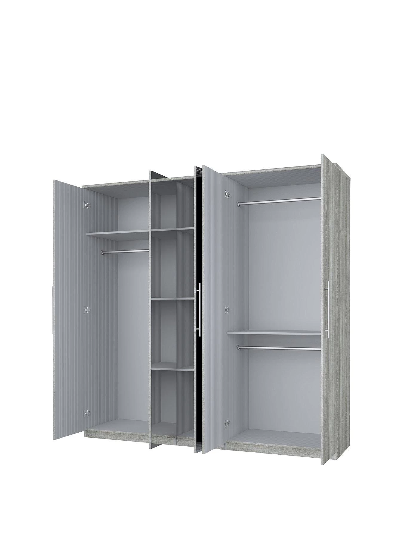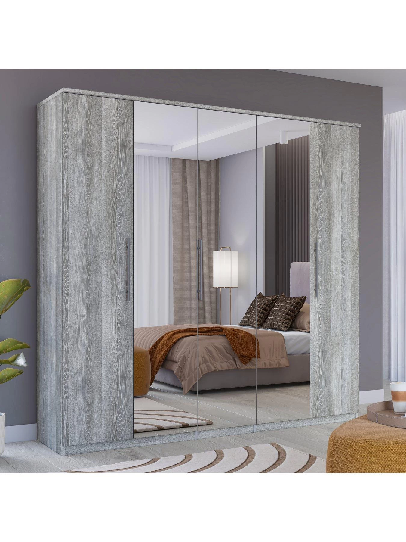 Prague 5-door Mirrored Wardrobe in White Ash-Effect, Oak-Effect, Walnut-Effect, Grey Ash-Effect or Black Ash-Effect – from our great value Home Essentials range – FSC® Certified