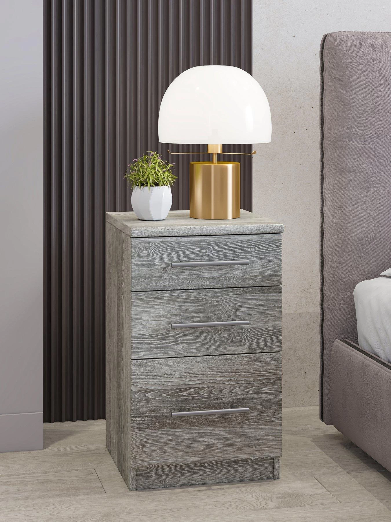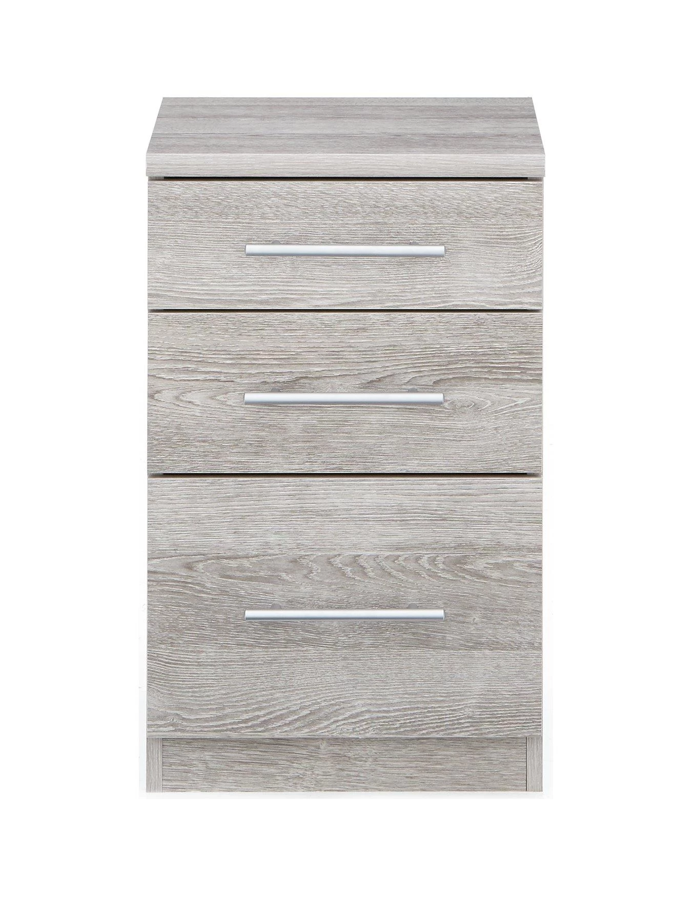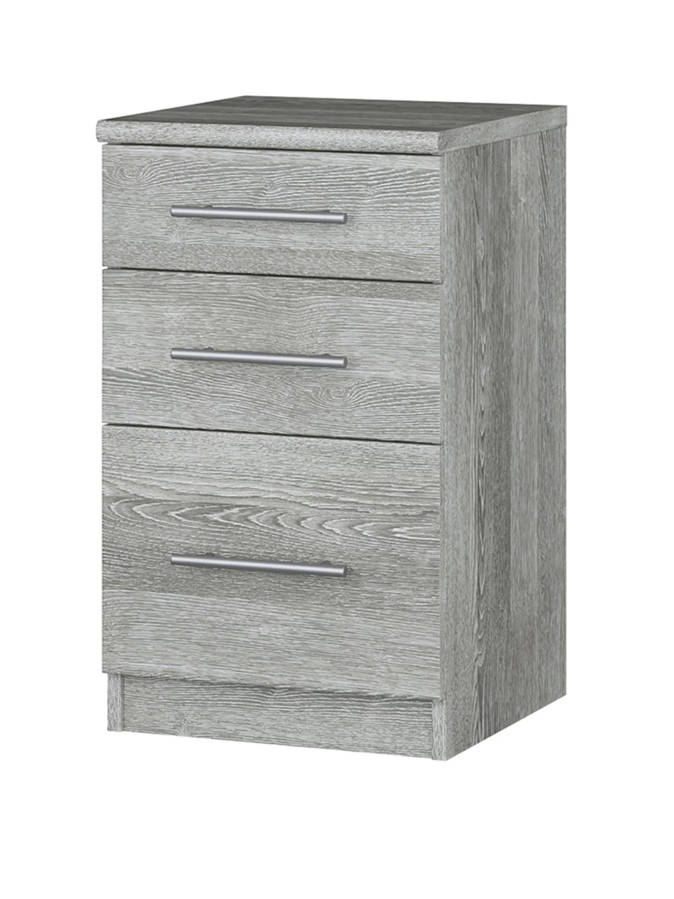 The graduated design features an extra-deep bottom drawer for even more storage space, while the top drawer is shallow so all your bedside essentials are easy to find. All 3 drawers sit on easy-glide metal runners for friction-free opening.
