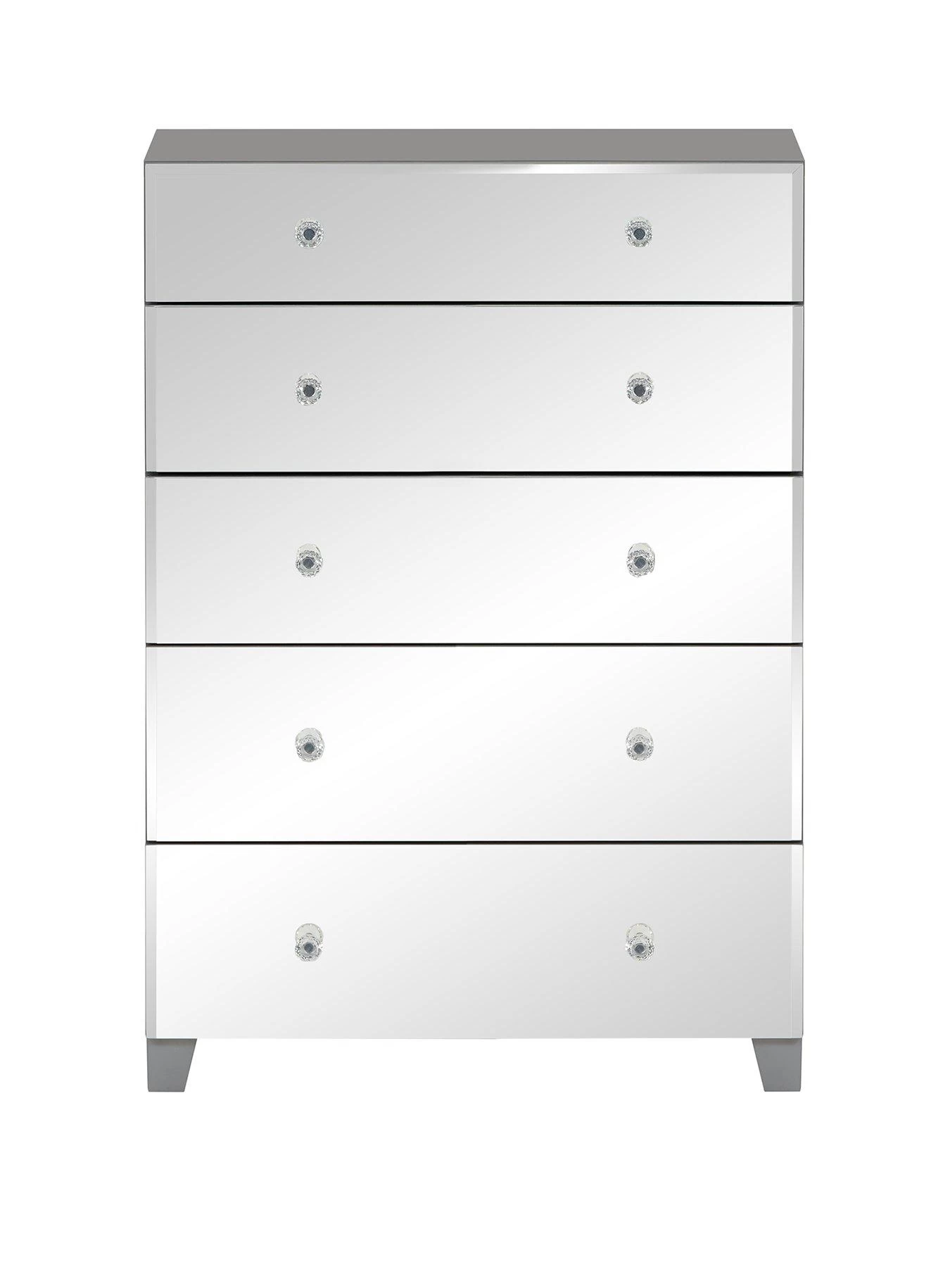 New Bellagio 5 Drawer Chest in White or Grey with Mirrored Fronts – FSC® Certified