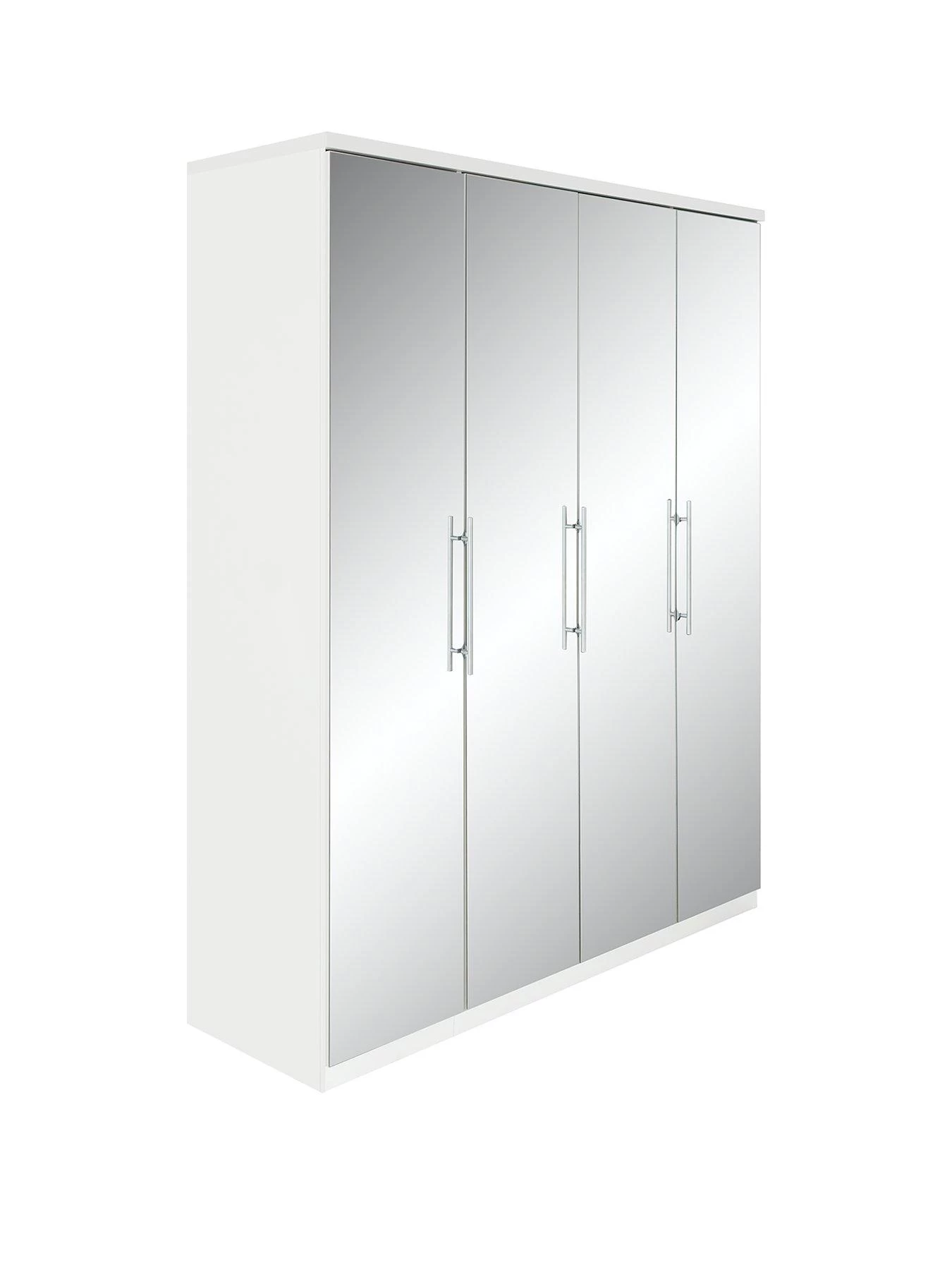 Prague 4-door Wardrobe with Mirrored Doors and Internal Chest of 3 Drawers – FSC® Certified