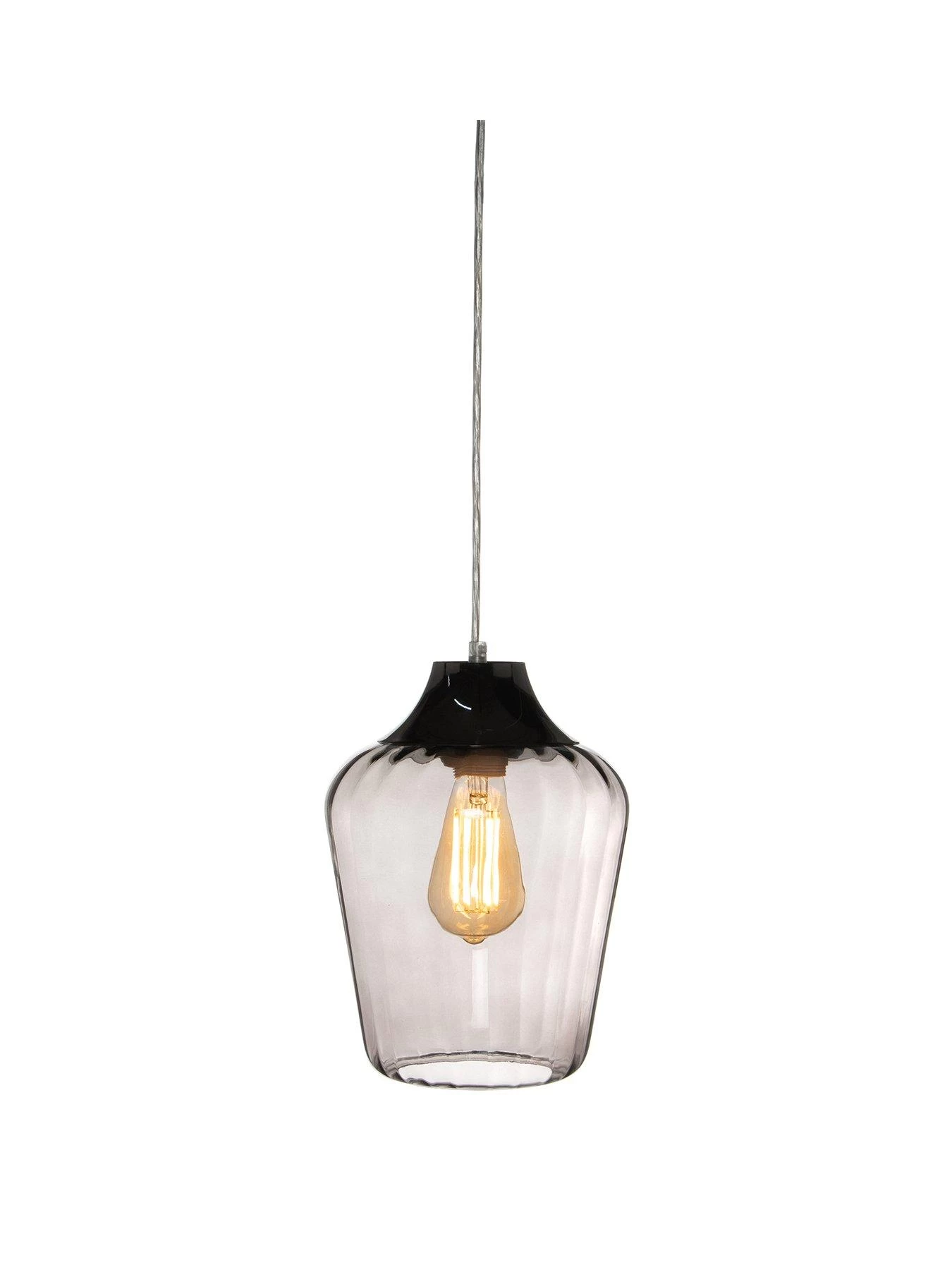 This super sleek and elegant pendant from the Rita collection has a breathtaking design and is easy to fit. Requiring no wiring, you’ll be able to see the difference it makes to your light right away. The wonderfully shaped glass features ribbing detail and is smoked to soften the light as it shines through.