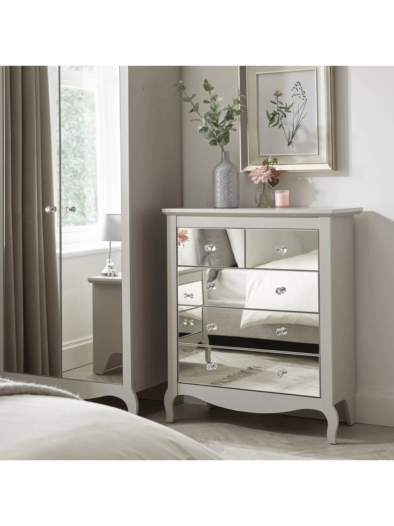 Sandy Mirrored 3 + 2 Chest of Drawers in Grey
