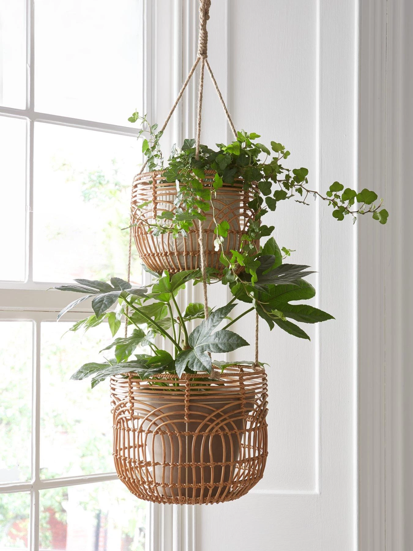 Very Home Set Of 2 Rattan Style Hanging Planters
