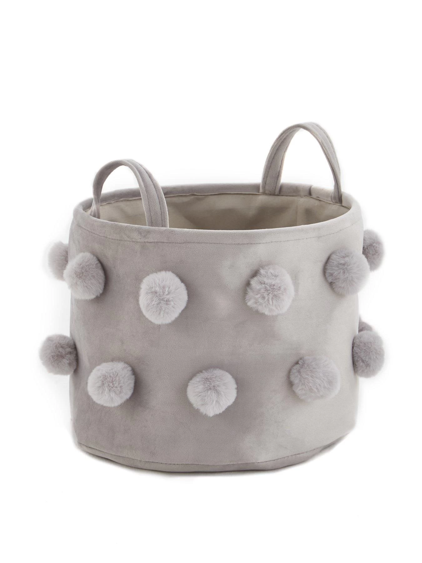The silver colourway makes them a versatile match to most palettes, and each one has a height of 25 cm, along with a 35 cm diameter, so they can fit on shelves when full. Handles make them easy to carry when you’re tidying around the home, and both are finished with fluffy pom poms all around the exterior.