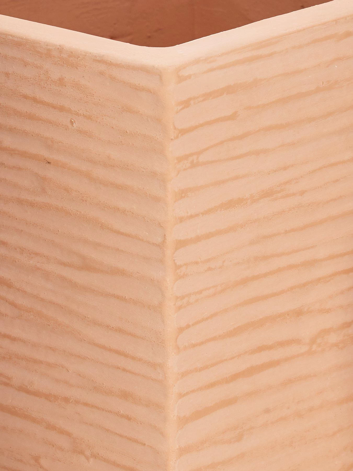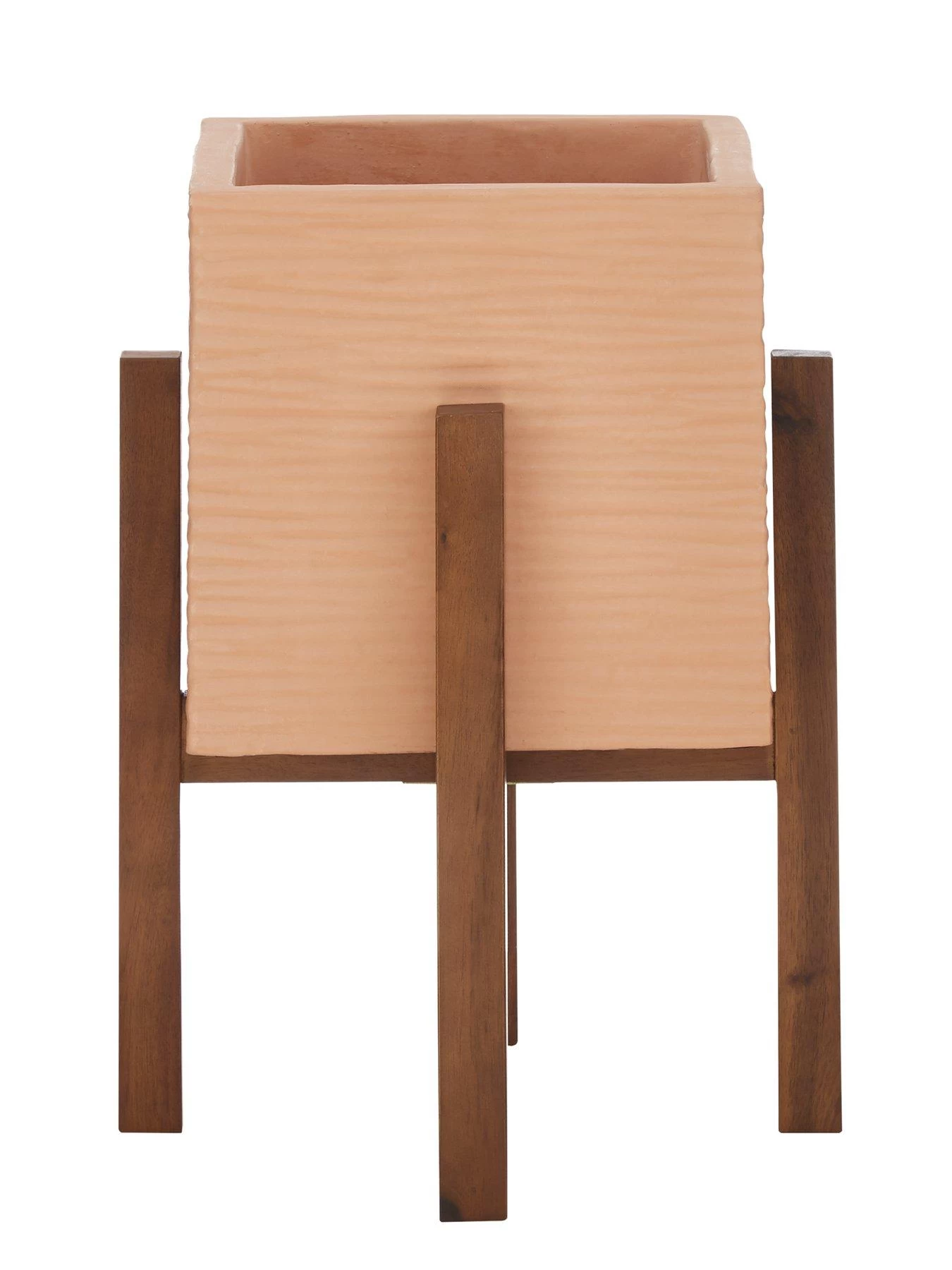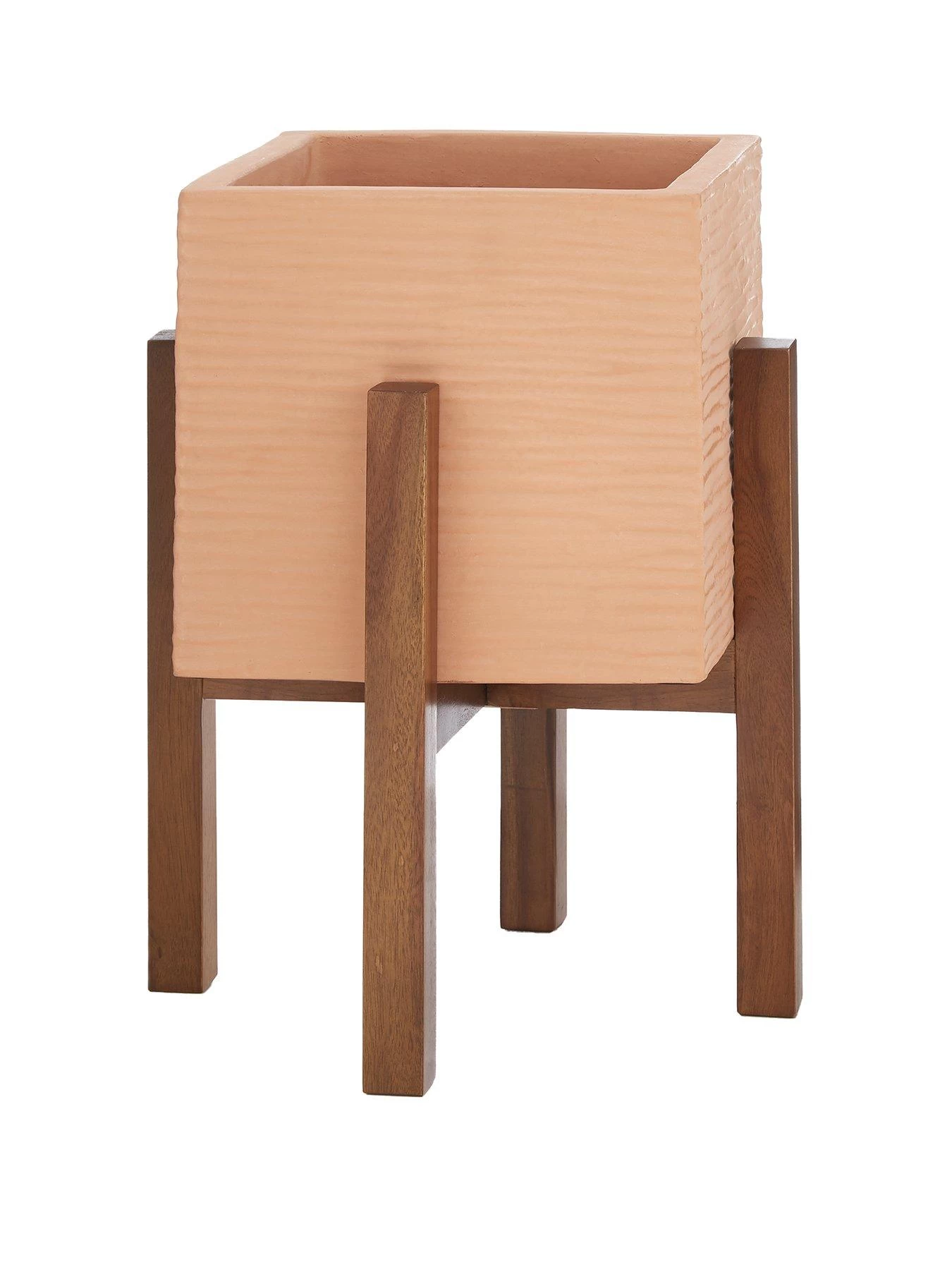 Held atop sleek wooden legs made from durable acacia wood, this ceramic planter features a sand coloured square design that will look effortlessly chic in your home.