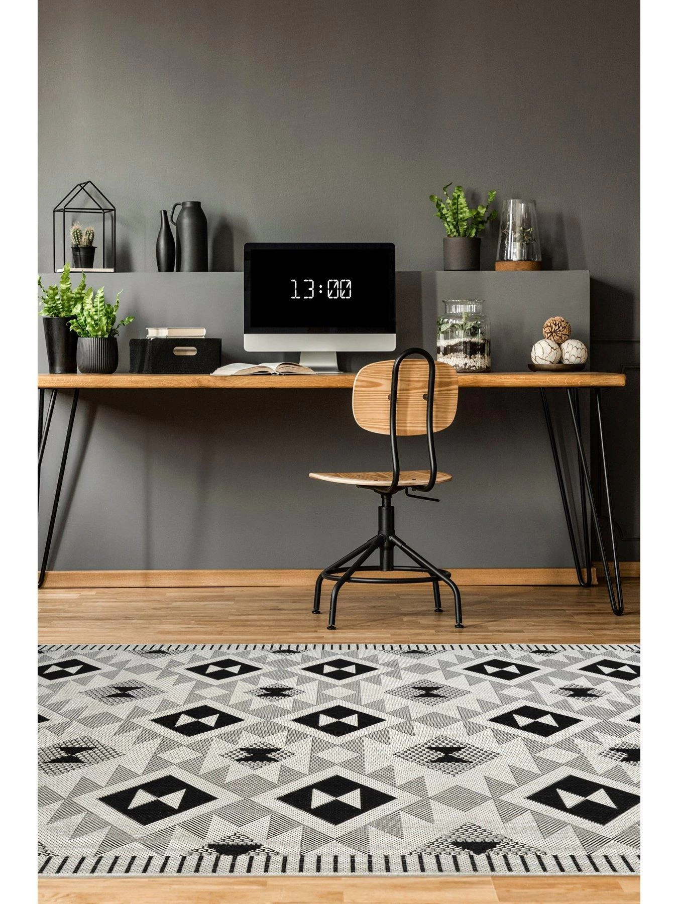 The stunning pattern is given a modern edge by the monochrome colour palette, and it’s so easy to care for – simply use a surface carpet shampoo to spot clean to keep colours staying vibrant without fading in sunlight.