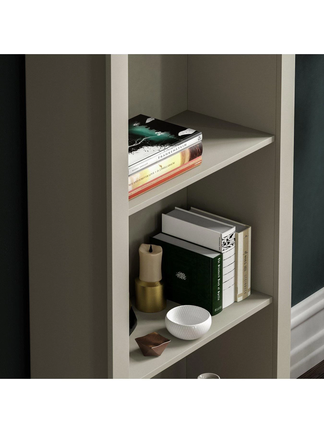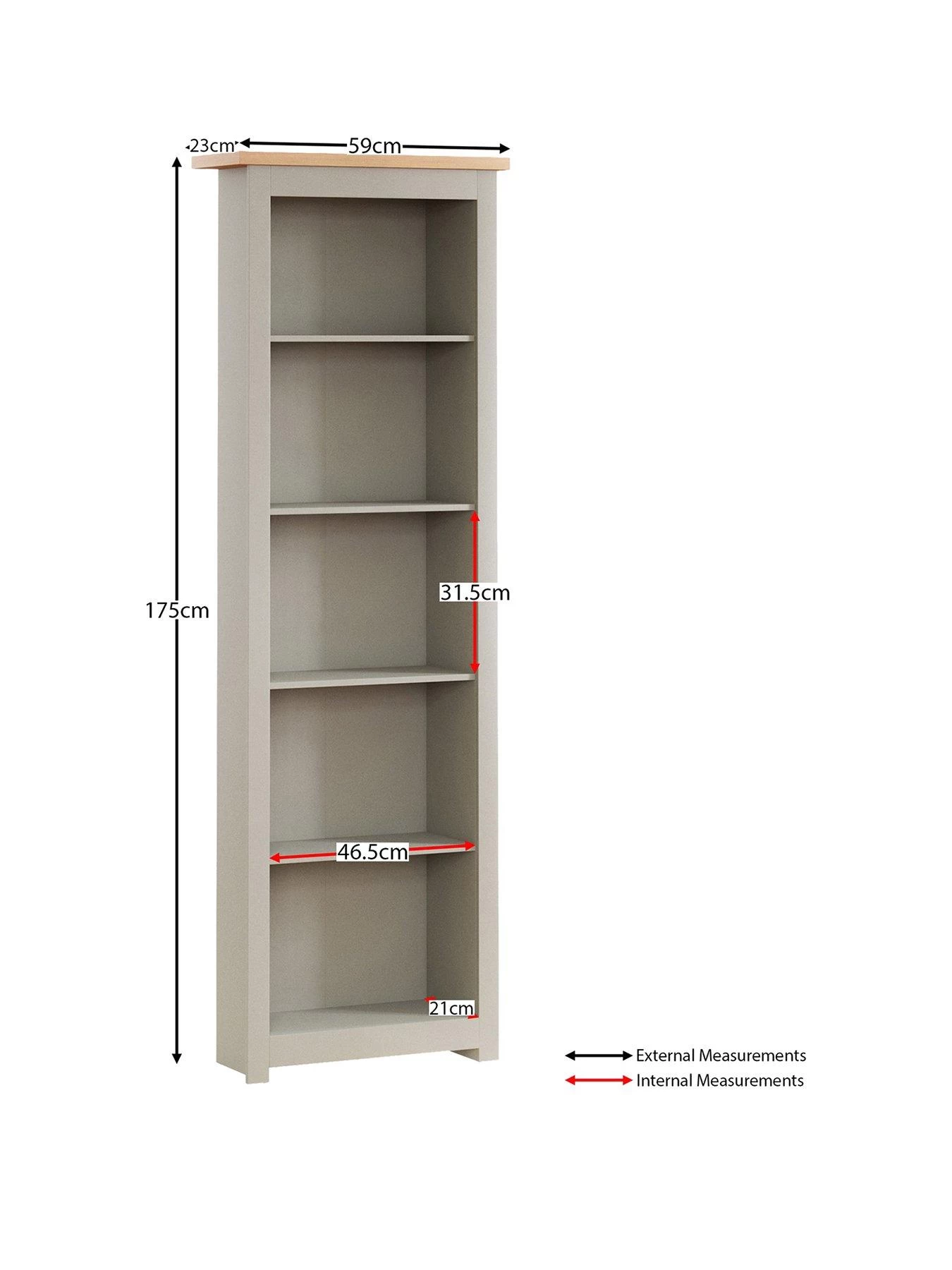 Styled with chunky sides for a substantial look, five shelves provide a smart display area for novels, ornaments, family photos and more.