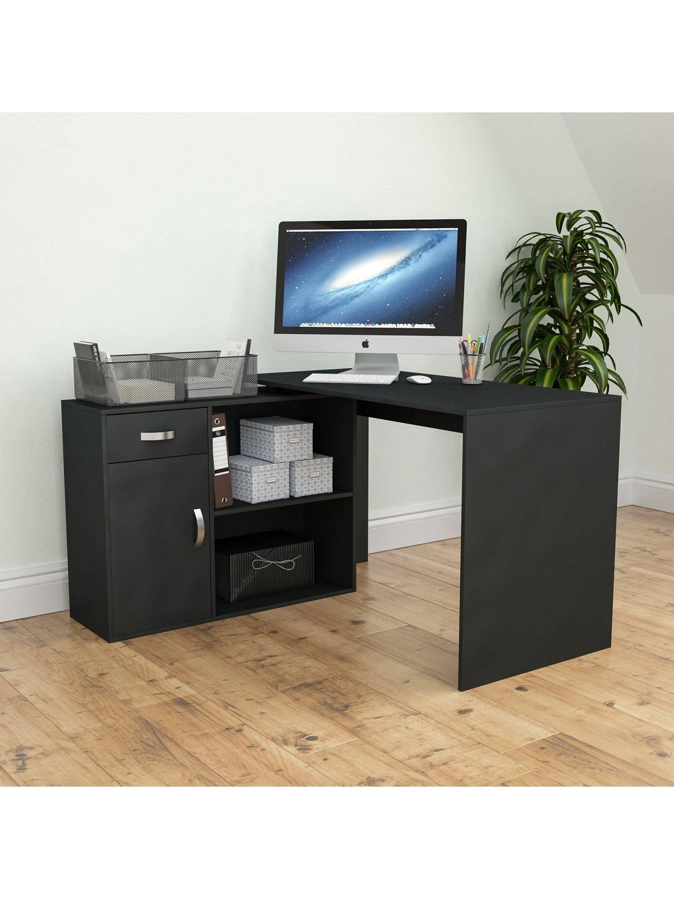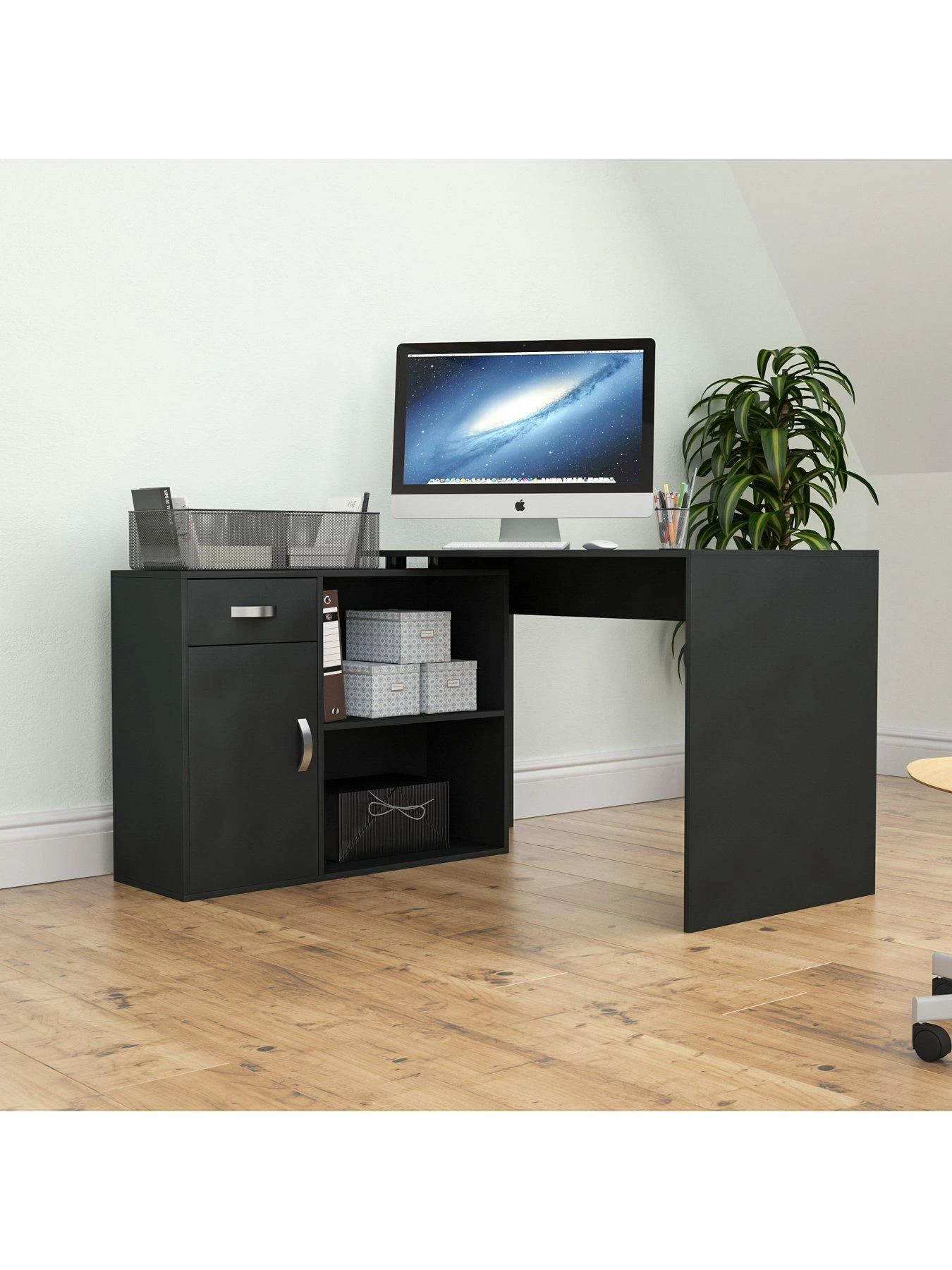 Longton computer desk offers modern minimal design for elegant addition to any home, office, study or living room. The desk features customized assembly, which allows you to use it as a L-shaped corner desk or a flat-wall desk to suit your preferences. This desk features two open shelves offering space to store your personal items, one sliding drawer and one cabinet. This desk is perfect for organising, storing, and hiding items. The large tabletop is big enough for a computer screen, keyboard and decorations too as well as stationary. This desk is available in different colours to make sure you can match it with your style and existing furniture. Please note that this item is flat packed and will require self-assembly, easy to follow instructions will be provided.