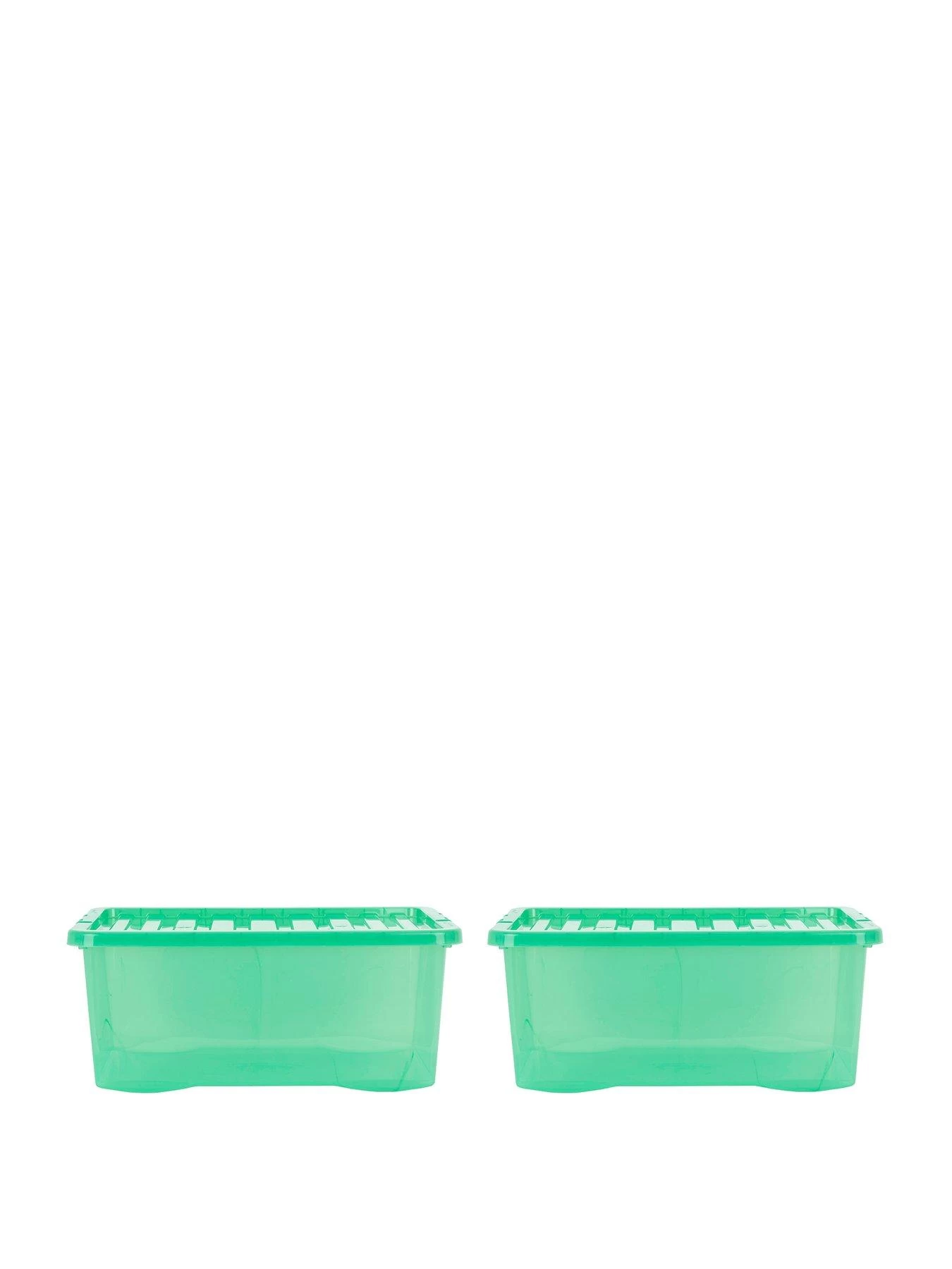 Wham Set of 2 Crystal Green Storage Boxes – 45-litre Capacity