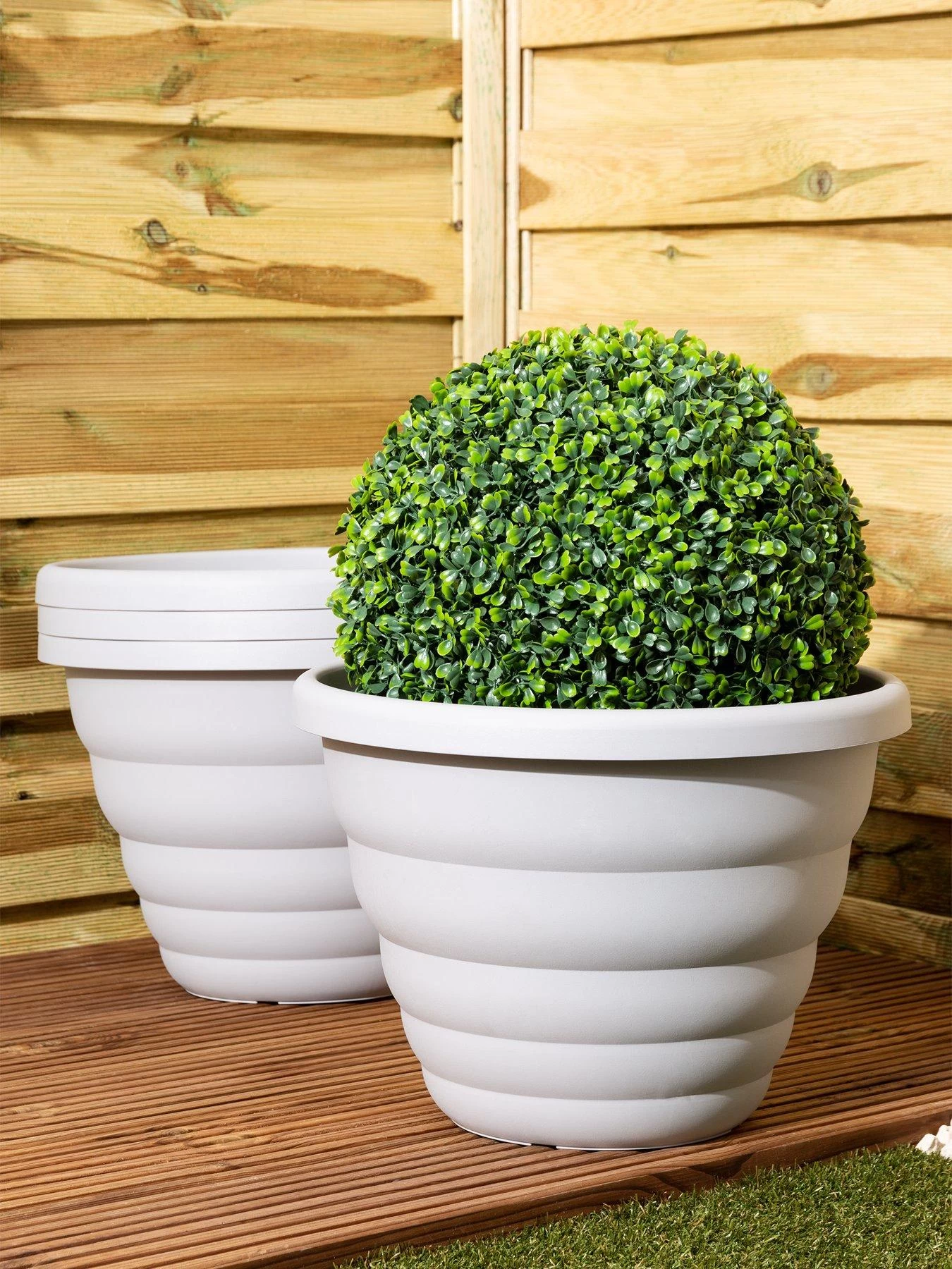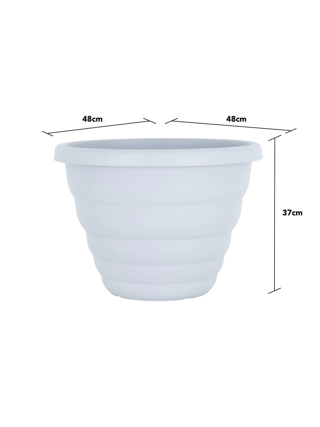 Set of 4 Beehive 48cm Round Pot in Cement Grey. This pot is suitable for both indoor and outdoor use being strong, yet lightweight and weather resistant. Approx 40L Capacity.